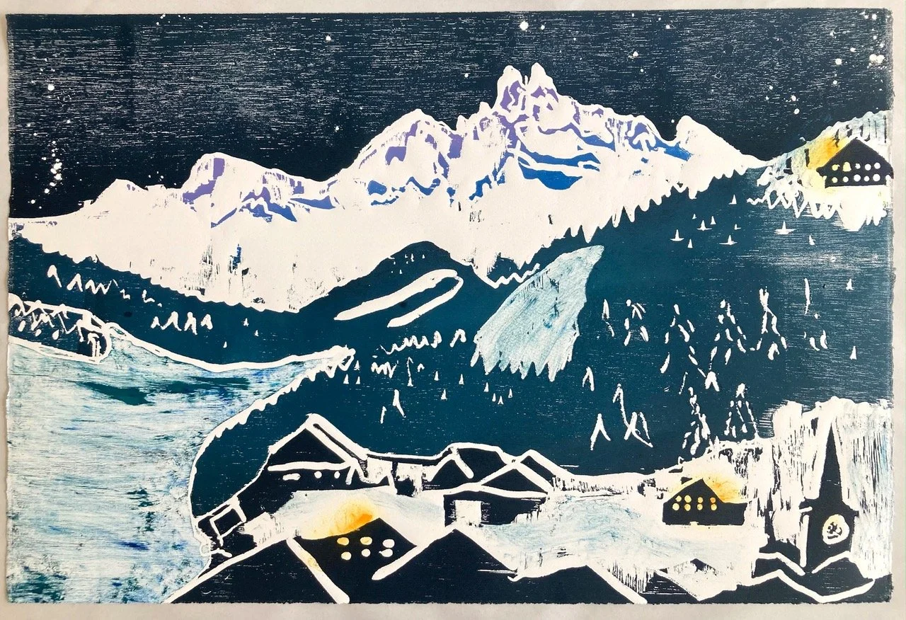 Winner of the Boodle Hatfield Prize for Printmaking at Woolwich Contemporary Print Fair 2020, she is pleased to have exhibited prints every year since the Fair was established. Frequently on the walls of the Royal Academy Summer Exhibition with her distinctive woodcuts, recent solo exhibitions include Rabley Gallery and Eton College. This year she completed a commission for Cunard, destined for the newest addition to the fleet, Queen Anne.