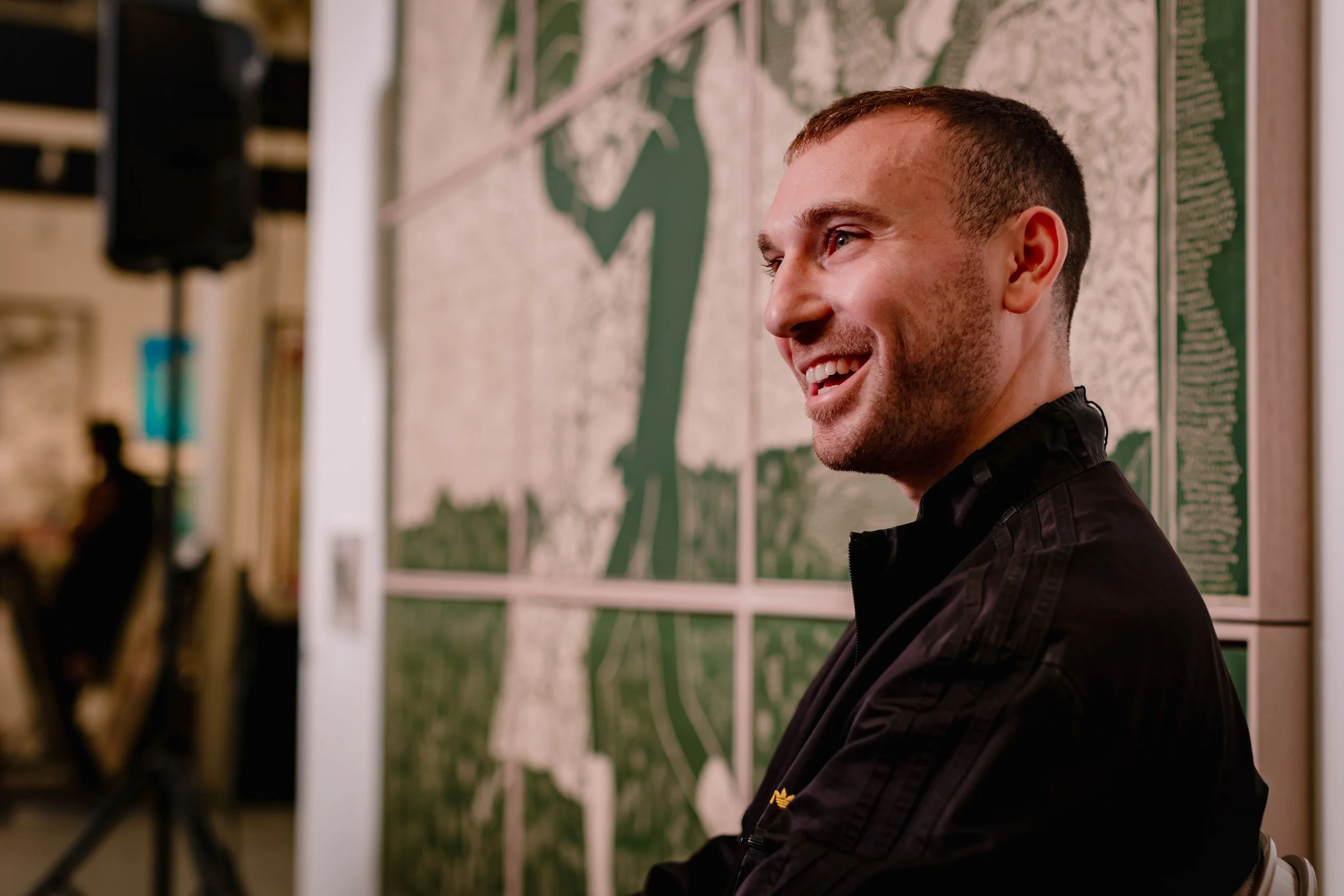 Gallery Director’s Lizzie & Jack presented Jake’s work with Woolwich Contemporary Print Fair as a solo exhibition in summer 2022 during Mayfair Art Weekend, and subsequently previewed his monumental woodcut, Man Wrestling An Angel (2022) at the Fair in November.